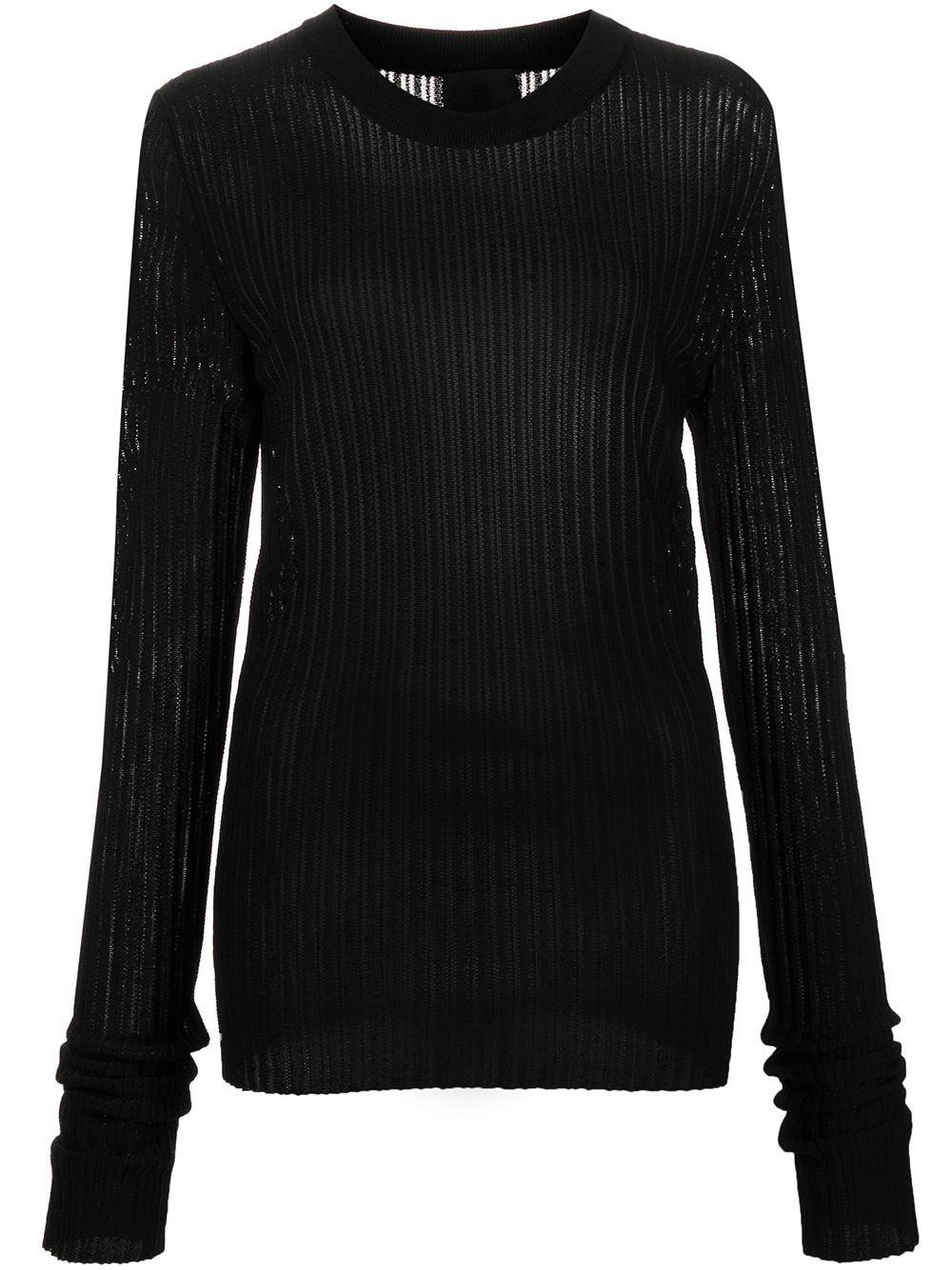 fine ribbed-knit jumper black fine knit ribbed detailing crew neck long sleeves straight hem Made in Italy Composition Viscose 75%, Polyamide 25% SIZE & FIT Model measurements Height 5 ft 10 in(1.77 m) Bust/Chest 31.88 in(81 cm) Hips 34.64 in(88 cm) Waist 24.01 in(61 cm) Washing instructions Dry Clean Only