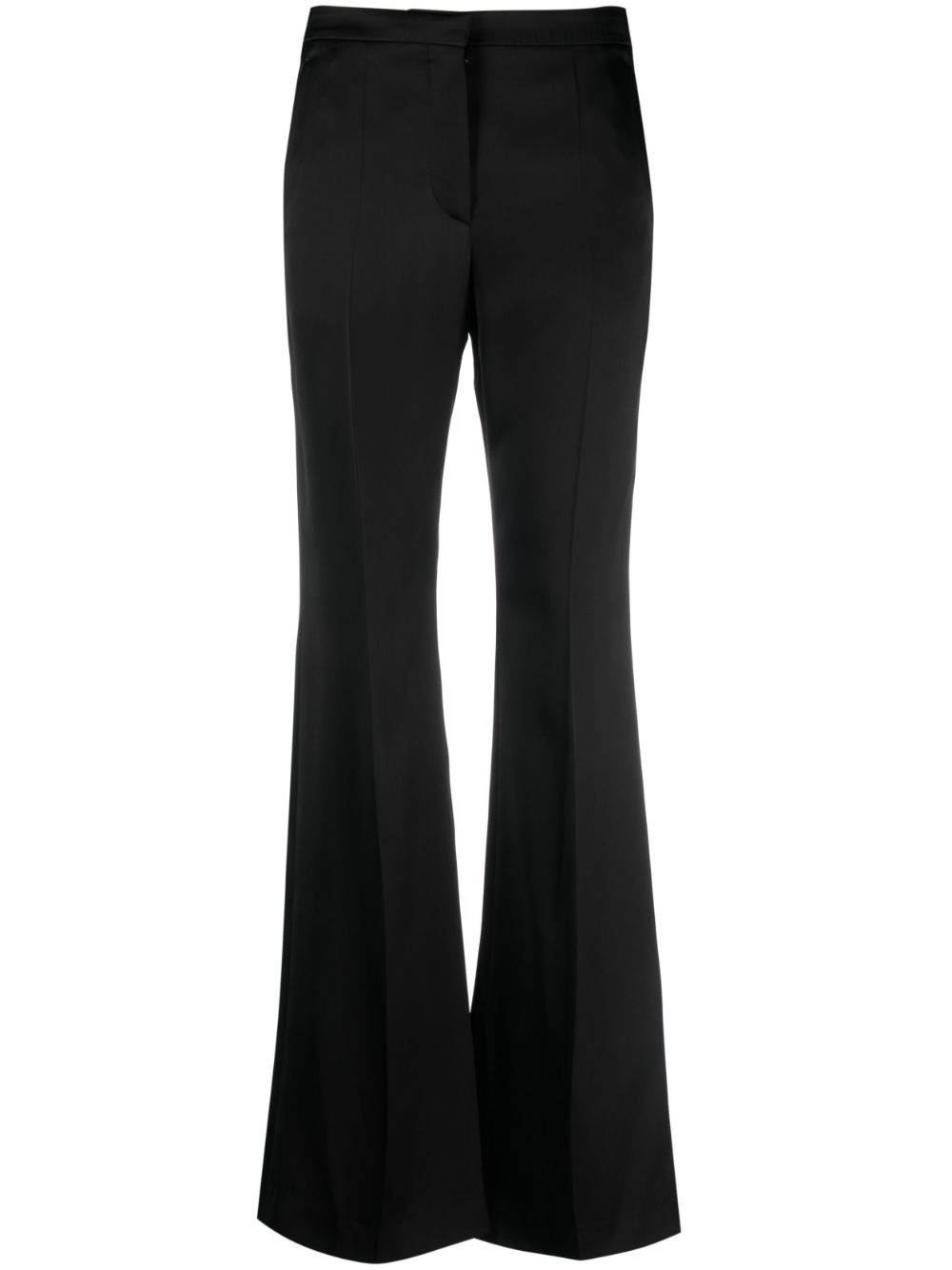 flared cotton trousers Highlights - Black - Cotton - Pressed crease - Concealed front fastening - Mid-rise - Flared - Two rear jetted pockets Made in Italy Composition Lining: Cotton 100% Outer: Viscose 100% SIZE & FIT Model measurements Height 5 ft 10 in(1.77 m) Bust/Chest 32.67 in(83 cm) Hips 35.43 in(90 cm) Waist 23.62 in(60 cm) FittingInformation Designed with a flared hem, these trousers allow for a close fit at the waist with a slim fit over the leg and widening towards the hem Made from a midweight non-stretch fabric This piece fits true to size – take your usual size