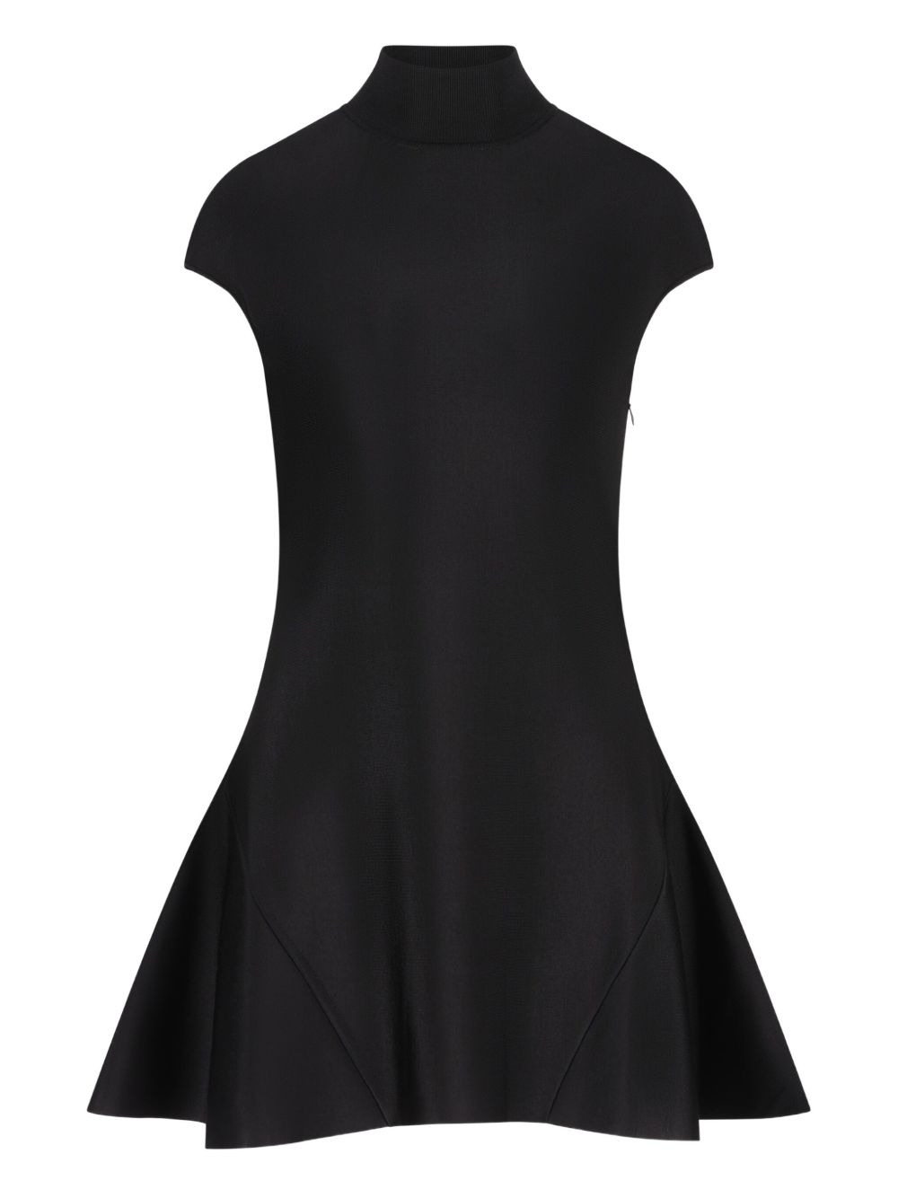 flared midi dress Highlights - Black - High neck - Flared hem - Short sleeves Made in Italy Composition Viscose 45%, Wool 35%, Polyamide 14%, Polyester 5%, Elastane 1% Washing instructions Dry Clean Only