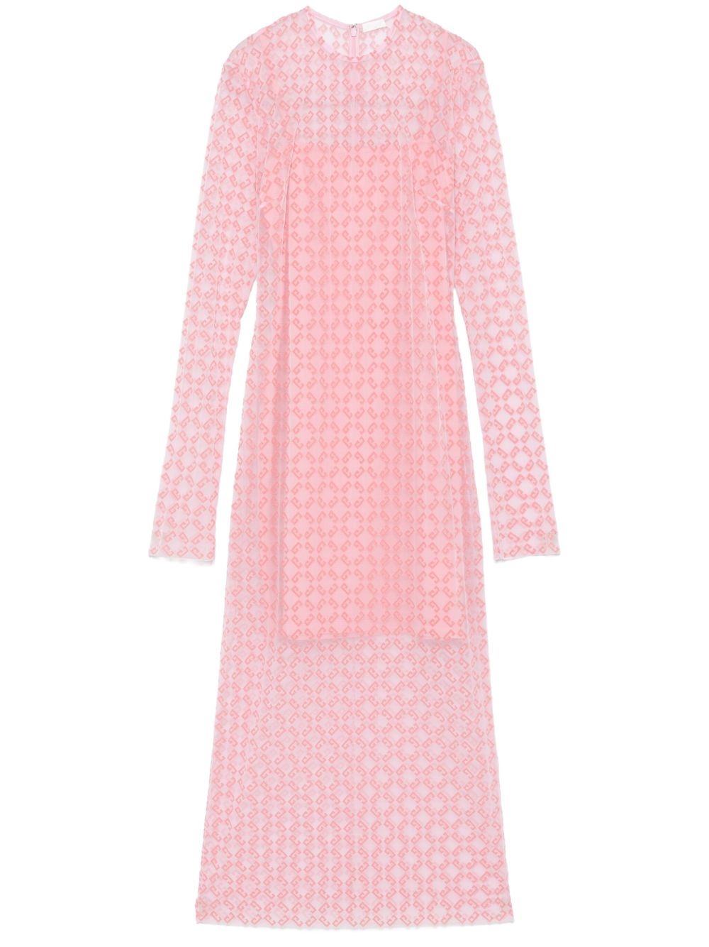flocked-logo midi dress Highlights - Bubblegum pink - Concealed rear hook and zip fastening - Removable lining - Crew neck - Long sleeves Made in Italy Composition Outer: Polyamide 82%, Spandex/Elastane 18% Lining: Polyamide 83%, Spandex/Elastane 17% SIZE & FIT Model measurements Height 5 ft 11 in(1.8 m) Bust/Chest 32.67 in(83 cm) Hips 36.22 in(92 cm) Waist 24.4 in(62 cm) FittingInformation Designed for a close fit throughout The detachable slip sits just away from the body, offering a close yet comfortable fit Made from a lightweight stretch fabric, this piece offers elasticity and flexibility when worn