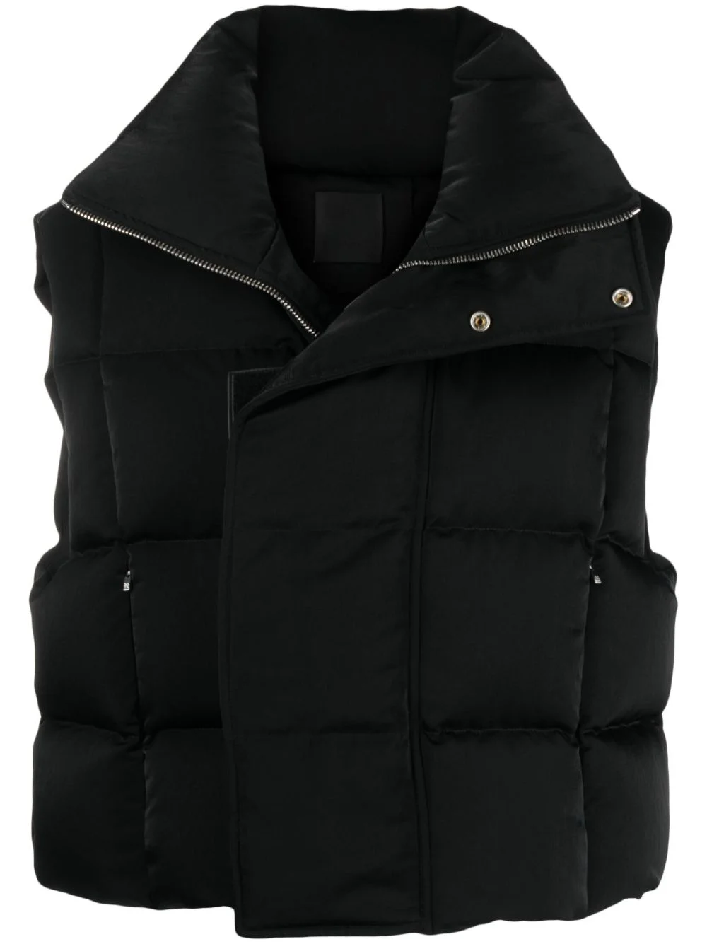 funnel-neck padded gilet Highlights - Black feather down/cotton funnel-neck padded gilet from givenchy featuring padded design, funnel neck and front snap-button and zip fastening. Made in Italy Composition Lining: Cotton 100%, Down 90%, Feather 10% Outer: Polyamide 100% SIZE & FIT Measurement LENGTH 23.62 in(60 cm) Washing instructions Dry Clean Only