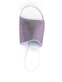 G Cube embellished mules A brand's signature style, the G Cube mules by Givenchy is back in a lavender purple hue for the new season. Crafted from leather, they have a durable design, adorned with strass all over, that sits atop a sculpted heel in a silvery finish. Highlights - Lavender purple - Calf leather - Signature 4g motif - Rhinestone embellishment - Open toe - Branded insole - Slip-on style - High sculpted heel Made in Italy Composition Rubber 100%