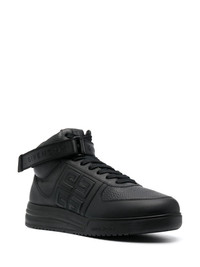 G4 logo-patch hi-top sneakers Highlights - Black - Calf leather - Panelled design - Perforated detailing - Logo patch to the side and tongue - Logo-debossed strap - Round toe - Front touch-strap over lace-up fastening - Branded insole - Flat rubber sole Imported Composition Sole: Rubber 100% Lining: Fabric 100% Outer: Calf Leather 100% SIZE & FIT Measurement HEEL 1.57 in(4 cm) Sole height 0.98 in(2.5 cm) HEIGHT 3.93 in(10 cm)