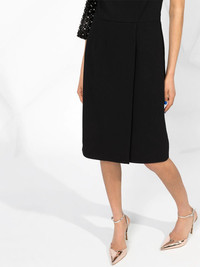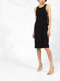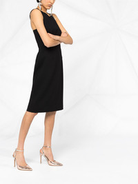 graphic neck dress Your LBD has had a tailored update. This black wool-crepe dress from Givenchy has a graphic, cut-out style back. Look as good when you enter the room as when you walk out. Featuring a round neck, a sleeveless design, a side zip fastening, graphic-shape back and a wrap skirt. Made in Italy Composition Lining: Silk 100% Outer: Wool 100% SIZE & FIT FittingInformation This piece fits true to size. We recommend you get your regular size Cut for a slim fit Made with a mid-weight fabric Washing instructions Dry Clean Only