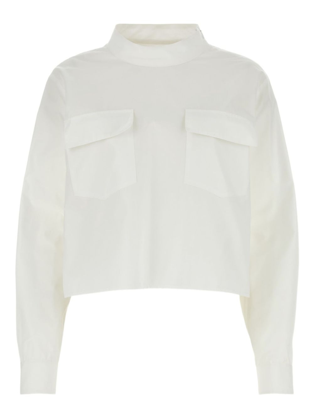 high-neck pocket blouse Highlights - White - High neck - Long sleeves - Button cuffs - Two-patch pockets Made in Italy Composition Cotton 83%, Silk 17% Washing instructions Dry Clean Only