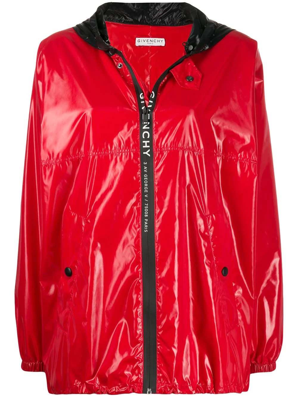 hooded zipped rain jacket The climate will got nothing on you. Made from red and black, this hooded zipped rain jacket from Givenchy will be your best friend during harsh weather conditions. Stay close! Featuring a hood with drawstring tie fastenings, a front zip fastening, two front pockets, long sleeves, elasticated cuffs, an elasticated hem and a white lettering logo print to the front. Imported Composition Polyamide 100% SIZE & FIT Model measurements Height 5 ft 9 in(1.76 m) Bust/Chest 33.07 in(84 cm) Hips 34.64 in(88 cm) Waist 25.59 in(65 cm) FittingInformation This piece fits true to size. We recommend you get your regular size Cut for a loose fit Made with a lightweight non-stretch fabric Washing instructions Machine Wash