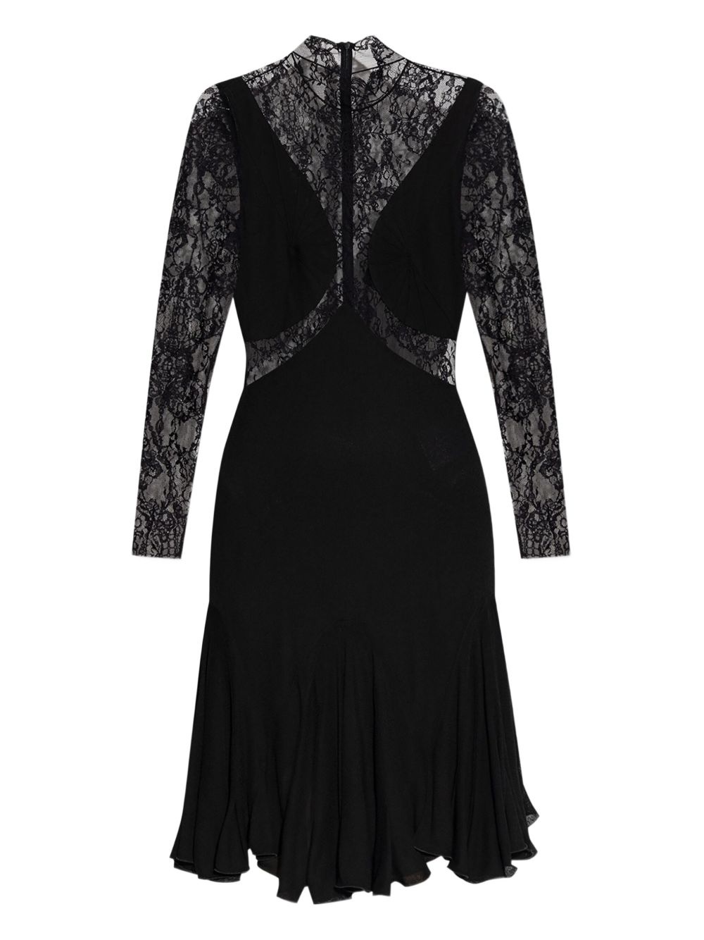 lace-panel midi dress Highlights - Black - Lace panels - High neck - Long sleeves Made in Italy Composition Viscose 100%, Polyamide 91%, Elastane 9%