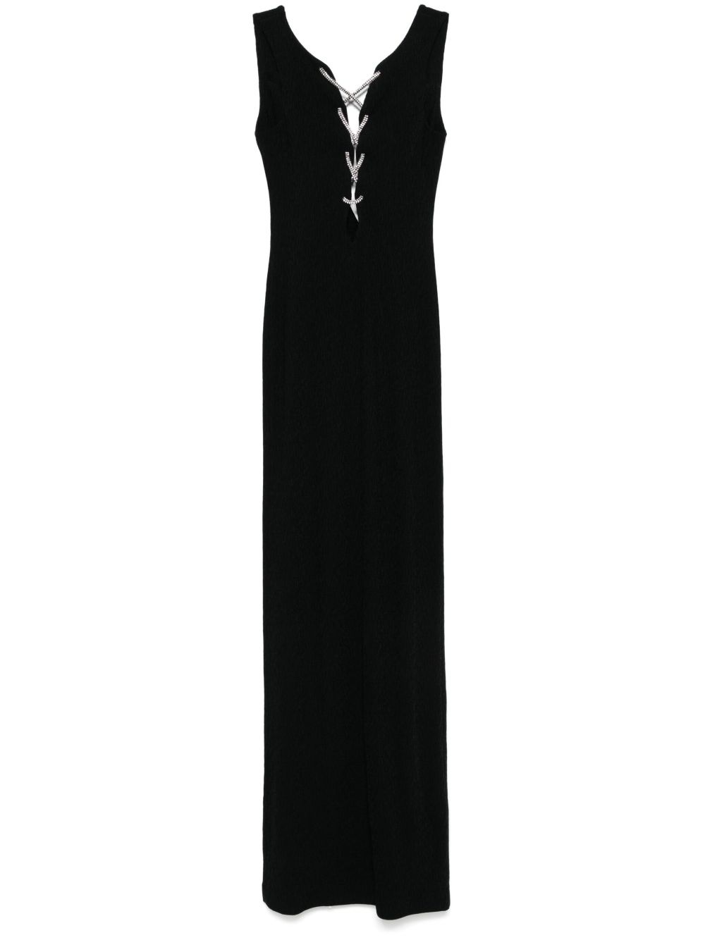 lace-up gown Highlights - Black - Rear slit - Draped back - Crystal embellishment Made in Italy Composition Outer: Viscose 96%, Polyamide 3%, Spandex/Elastane 1% Lining: Polyamide 82%, Spandex/Elastane 18% Washing instructions Specialist Cleaning