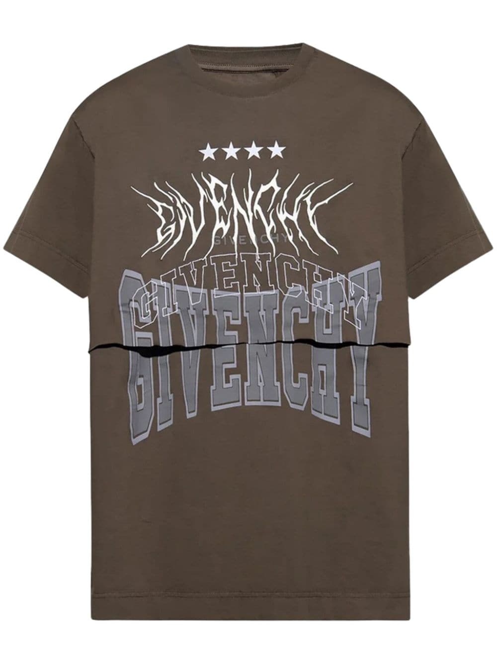 layered cotton T-shirt Highlights - Brown/grey/white - Cotton - Jersey texture - Layered design - Logo print to the front - Graphic print to the front - Crew neck - Drop shoulder - Short sleeves - Straight hem Imported Composition Cotton 100% Washing instructions Read Manufacturer Guidelines