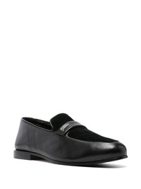 leather loafers Highlights - Black - Calf leather - Grained texture - Suede panels - Logo plaque - Almond toe - Branded leather insole - Rubber sole Made in Italy Composition Sole: Calf Leather 100%, Rubber 100% Lining: Calf Leather 100% Outer: Lamb Skin 100% SIZE & FIT Measurement HEEL 0.59 in(1.5 cm)