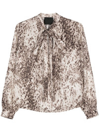 BLOUSE IN SILK WITH SNOW LEOPARD PRINT AND LAVALLIERE