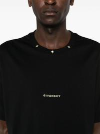 logo and stars-embroidered T-shirt Highlights - Black - Cotton - Lightweight jersey - Embroidered logo to the front - Star embroidery - Crew neck - Short sleeves - Straight hem Imported Composition Cotton 100% SIZE & FIT Model measurements Height 6 ft 2 in(1.87 m) Bust/Chest 36.41 in(92.5 cm) Hips 37 in(94 cm) Waist 29.52 in(75 cm) Measurement CHEST 51.18 in(130 cm) SLEEVE LENGTH 8.66 in(22 cm) LENGTH 30.7 in(78 cm) Shoulder Width 24.8 in(63 cm) FittingInformation Designed for a regular fit allowing for a comfortably loose fit throughout the body Made from a midweight non-stretch fabric, this piece offers minimal elasticity when worn This piece fits true to size – take your usual size Washing instructions Machine Wash