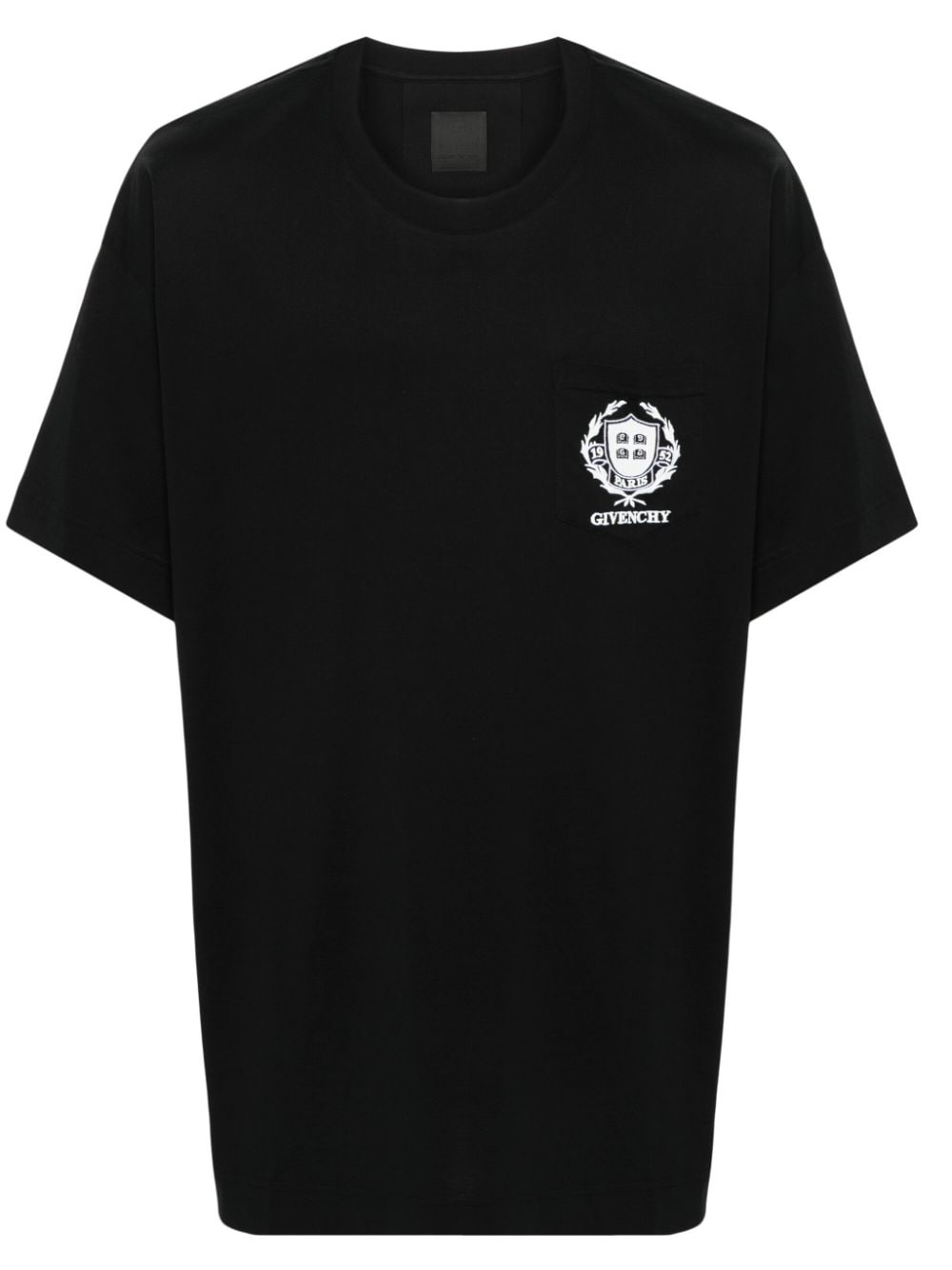logo-embroidered cotton T-shirt Highlights - Black - Cotton - Jersey texture - Embroidered logo at the chest - Signature 4g embroidered to the rear - Crew neck - Drop shoulder - Short sleeves - Chest patch pocket - Straight hem - Unlined Imported Composition Cotton 100% SIZE & FIT Model measurements Height 6 ft 2 in(1.87 m) Bust/Chest 38.18 in(97 cm) Hips 36.61 in(93 cm) Waist 29.13 in(74 cm) Measurement CHEST 47.24 in(120 cm) SLEEVE LENGTH 8.66 in(22 cm) LENGTH 29.52 in(75 cm) Shoulder Width 22.04 in(56 cm) FittingInformation Designed for an oversized fit, offering additional room throughout Made from a midweight non-stretch fabric, this piece offers minimal elasticity when worn This piece fits true to size – take your usual size Washing instructions Machine Wash