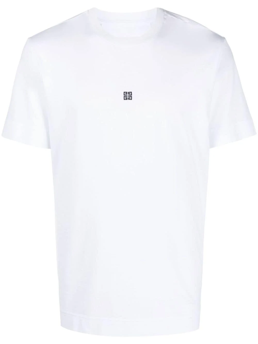 logo-embroidered cotton T-shirt Givenchy showcases the art of simplicity with this white T-shirt. Cut from cotton to a classic crew neck silhouette, it's embroidered with a small iteration of the signature 4G logo on the front in contrasting black threads. Understated logo lettering lands on the back of the design. Highlights - Crew neck small contrasting 4g emblem embroidered on the front small contrasting givenchy signature embroidered on the back slim fit the model is wearing size m 100% cotton made in portugal100% cotton Made in Italy Composition Cotton 100% SIZE & FIT Model measurements Height 6 ft 2 in(1.89 m) Bust/Chest 37.79 in(96 cm) Hips 37 in(94 cm) Waist 29.92 in(76 cm) Measurement Shoulder Width 16.49 in(41.9 cm) SLEEVE LENGTH 8.66 in(22 cm) LENGTH 27.16 in(69 cm) CHEST 39.37 in(100 cm) FittingInformation Designed for a slim fit, offering a comfortable fit that sits just away from the body Made from a midweight non-stretch fabric, this piece offers minimal elasticity when worn This piece fits true to size – take your usual size