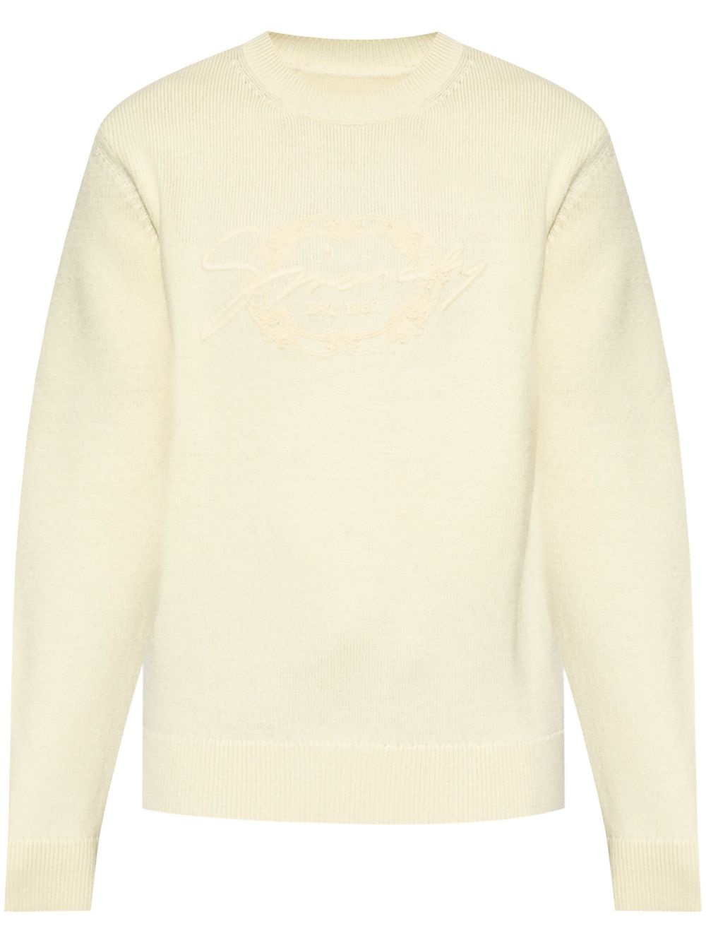 logo-embroidered jumper Highlights - Light beige - Wool - Ribbed knit - Crew neck - Embroidered logo to the front - Long sleeves - Straight hem Made in Italy Composition Wool 100%