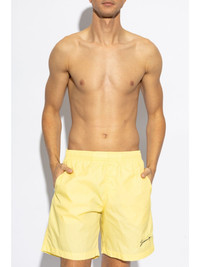 logo-embroidered swim shorts Highlights - Light yellow - Textured finish - Embroidered logo to the side - Elasticated waistband - Two side welt pockets - Rear welt pocket - Thigh-length - Be mindful to try on swimwear over your own garments. Made in Italy Composition Polyamide 100%