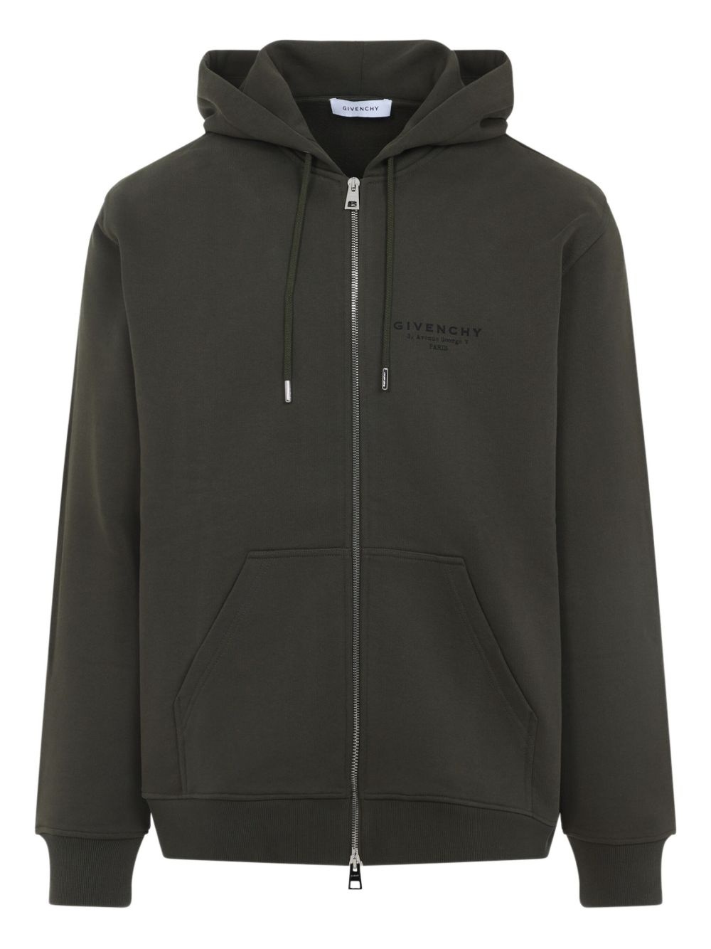 ZIPPED HOODIE IN FLEECE WITH GIVENCHY STAMP PRINT