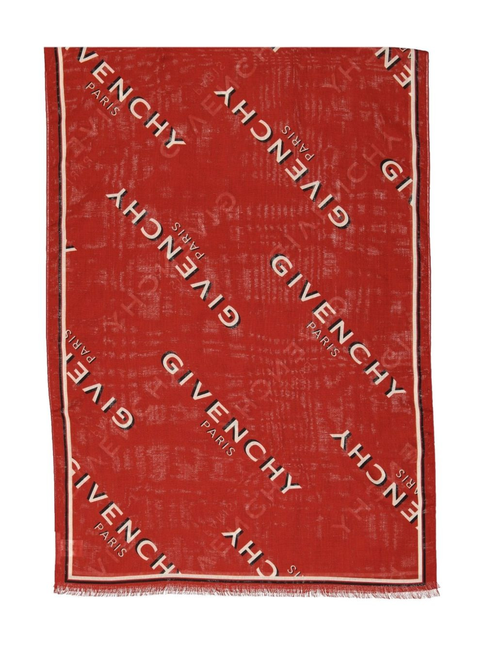 logo-lettering frayed scarf Highlights - Red - Logo print - Fringed edge - Silk-wool blend Made in Italy Composition Wool 69%, Silk 31%