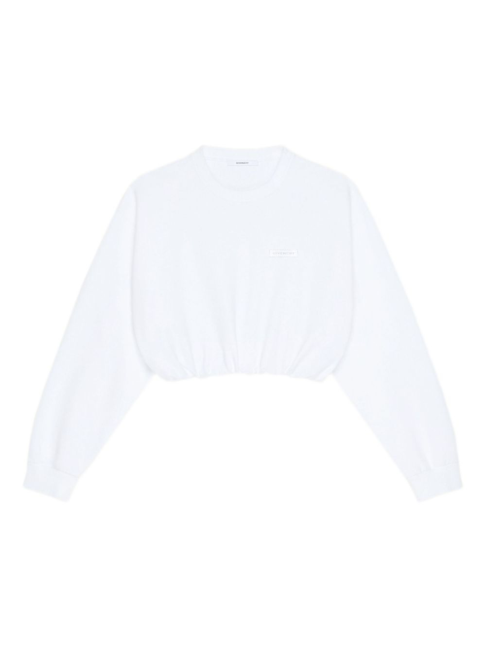 logo-patch cropped sweatshirt Highlights - White - Elasticated hem - Long sleeves - Crew neck - Logo patch Imported Composition Cotton 100% Washing instructions Read Manufacturer Guidelines