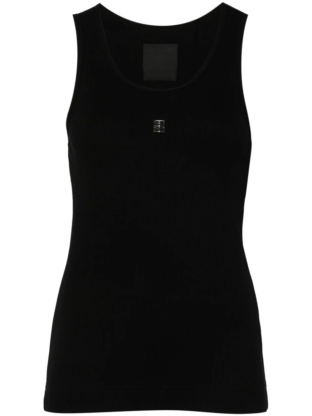 4G-motif tank top Givenchy's mirrored 4G logo takes the focus of this ribbed tank top. The emblem is rendered in silver-tone hardware, providing contrast against the black stretch-cotton construction. Highlights - Black - Cotton blend - Ribbed knit - Signature 4g motif - Scoop neck - Straight hem Imported Composition Cotton 98%, Spandex/Elastane 2% SIZE & FIT Model measurements Height 5 ft 10 in(1.78 m) Bust/Chest 32.67 in(83 cm) Hips 35.43 in(90 cm) Waist 23.22 in(59 cm) Measurement BUST 27.99 in(71.1 cm) LENGTH 25.98 in(66 cm) WAIST 27.99 in(71.1 cm) FittingInformation Designed for a slim fit that sits just away from the body offering a close yet comfortable fit Made from a midweight stretch fabric, this piece offers elasticity and flexibility when worn This piece fits true to size – take your usual size