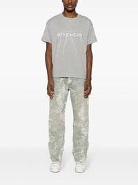 logo-print cotton T-shirt Givenchy’s T-shirt is a bold take on classic crew-neck styles. It’s cut from light-grey cotton jersey and adorned with logo lettering framed with bolts of lightning. Highlights - Light grey - Cotton - Jersey texture - Melange effect - Tonal stitching - Metallic effect - Logo print to the front - Crew neck - Short sleeves - Straight hem Imported Composition Cotton 100% SIZE & FIT Model measurements Height 6 ft 2 in(1.89 m) Bust/Chest 39.76 in(101 cm) Hips 37.4 in(95 cm) Waist 29.92 in(76 cm) FittingInformation Designed for a boxy fit, intended for a loose fit throughout Made from a midweight non-stretch fabric, this piece offers minimal elasticity when worn This piece fits true to size – take your usual size