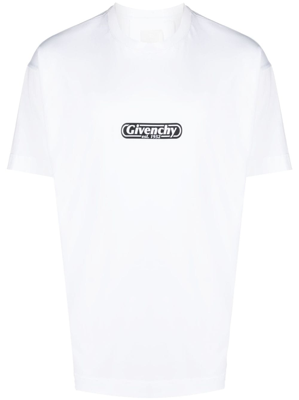 logo-print cotton T-shirt Highlights - Optical white - Cotton - Soft jersey - Logo print at the chest - Crew neck - Drop shoulder - Short sleeves - Straight hem Imported Composition Cotton 100% SIZE & FIT Model measurements Height 6 ft 1 in(1.85 m) Bust/Chest 38.58 in(98 cm) Hips 37 in(94 cm) Waist 30.31 in(77 cm) FittingInformation Designed to be unstructured, offering a loose fit throughout Made from a midweight non-stretch fabric, this piece offers minimal elasticity when worn This piece fits true to size – take your usual size Washing instructions Machine Wash