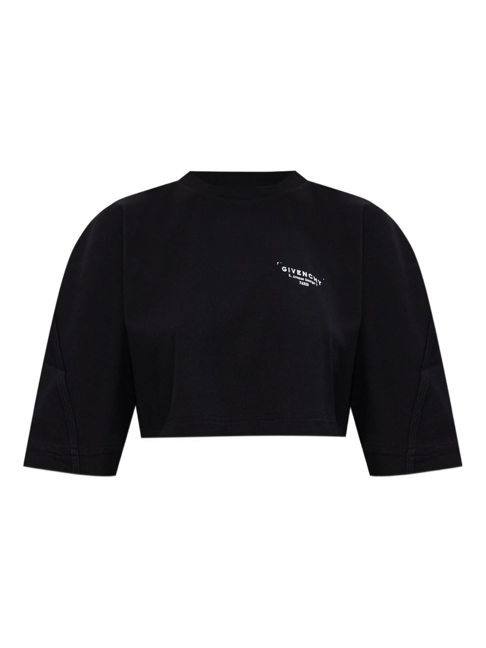 CROPPED FIT T-SHIRT IN COTTON WITH GIVENCHY STAMP PRINT