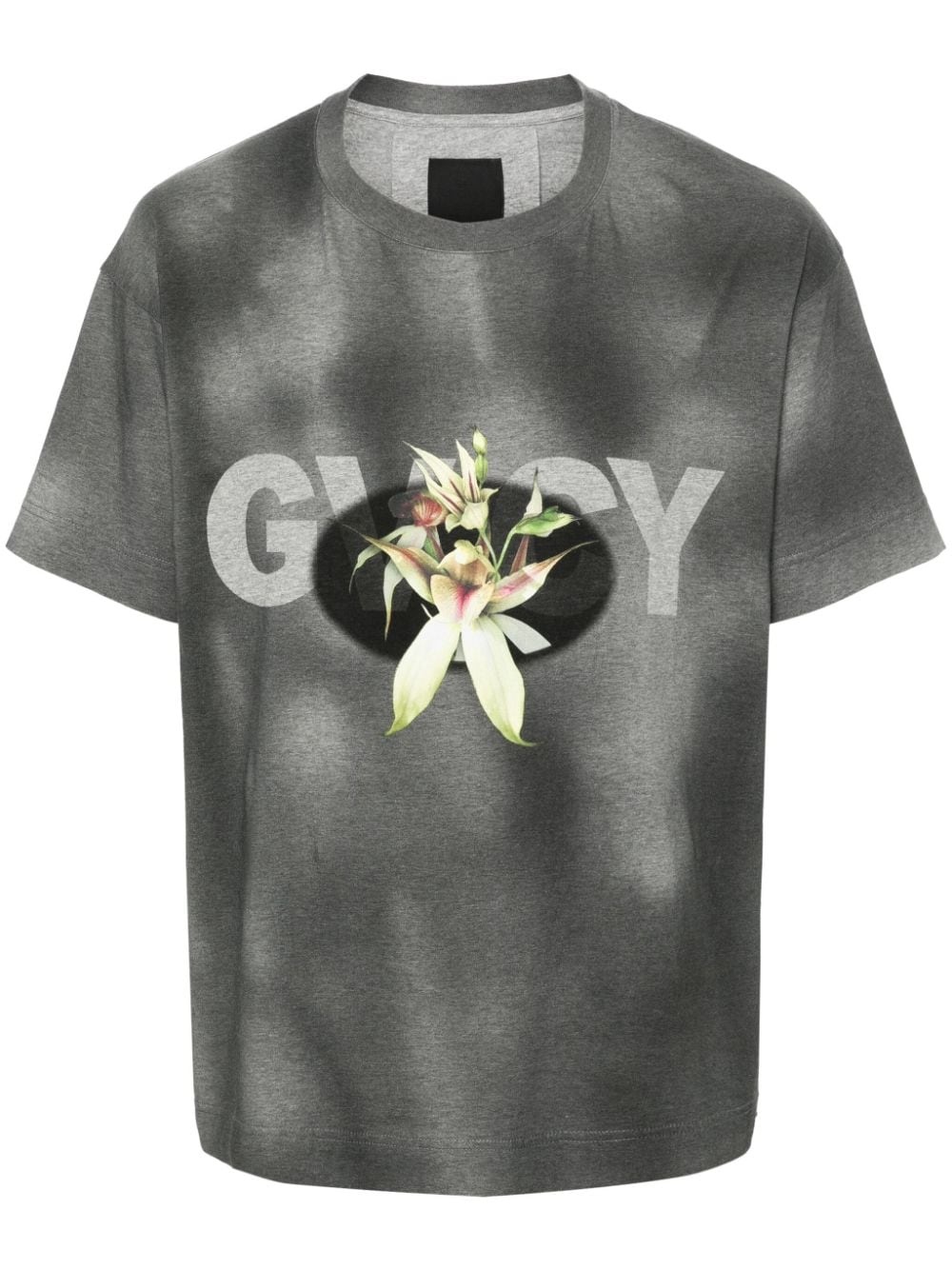 logo-print faded T-shirt Highlights - Black/multicolour - Faded effect - Cotton - Jersey texture - Crew neck - Short sleeves - Logo print at the chest - Floral print at he chest - Signature 4g motif to the rear - Straight hem Imported Composition Cotton 100% SIZE & FIT Model measurements Height 6 ft 2 in(1.87 m) Bust/Chest 33.46 in(85 cm) Hips 36.22 in(92 cm) Waist 29.52 in(75 cm) FittingInformation Designed for a boxy fit, intended for a loose fit throughout Made from a midweight non-stretch fabric, this piece offers minimal elasticity when worn This piece fits true to size – take your usual size