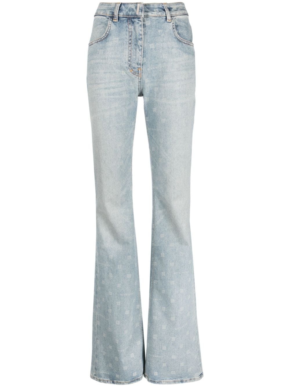 logo-print flared jeans Highlights - Light blue - Stretch-cotton - Denim - All-over logo print - Belt loops - Front button and zip fastening - Flared - Classic five pockets - Long length Made in Italy Composition Lining: Polyester 65%, Cotton 35% Outer: Cotton 90%, Elastane 10% SIZE & FIT Model measurements Height 5 ft 10 in(1.77 m) Bust/Chest 31.1 in(79 cm) Hips 34.64 in(88 cm) Waist 24.8 in(63 cm) FittingInformation Designed with a flared hem, these jeans allow for a close fit at the waist with a slim fit over the leg and widening towards the hem Constructed from stretch denim, this piece offers a stretch fit with durability This piece fits true to size – take your usual size