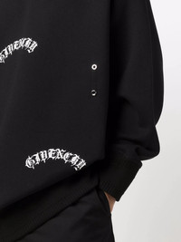 logo-print sweatshirt Givenchy's sweatshirt aligns with the moody aesthetic of the AW21 collection. The gothic-style logos are particularly highlighted against the all-black background. Imported Composition Cotton 100% SIZE & FIT Model measurements Height 6 ft 1 in(1.85 m) Bust/Chest 37.79 in(96 cm) Hips 37.4 in(95 cm) Waist 30.7 in(78 cm) FittingInformation This piece fits true to size. We recommend you get your regular size Cut for a loose fit Made with a mid-weight fabric Measurement CHEST 60.62 in(154 cm) Washing instructions Machine Wash