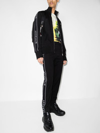 logo tape track pants Decorated with a logo tape down the leg, these black track pants from Givenchy reflect the brand's sportswear-inspired take on garments for AW22 whilst showcasing its penchant for branded embellishments. Highlights - Black - Elasticated waistband - Two side zip-fastening pockets - Two side inset pockets - Side stripe detailing - Embroidered logo to the side - Two rear welt pockets - Elasticated ankles Imported Composition Polyamide 50%, Viscose 48%, Elastane 2%