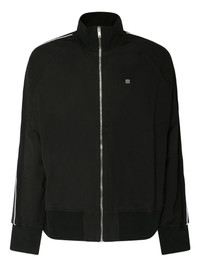 logo tape zipped jacket Seamlessly incorporating sportswear-inspired accents to branded pieces, Givenchy designs this black zipped jacket with long raglan sleeves elevated with a contrasting logo tape alongside their length. Highlights - Black - Funnel neck - Front zip fastening - Logo patch at the chest - Long sleeves - Side stripe detailing - Logo print at the sleeve - Ribbed cuffs - Ribbed hem Imported Composition Polyamide 50%, Viscose 48%, Elastane 2% SIZE & FIT Measurement CHEST 53.54 in(136 cm) SLEEVE LENGTH 33.46 in(85 cm) LENGTH 27.95 in(71 cm) WAIST 51.18 in(130 cm)