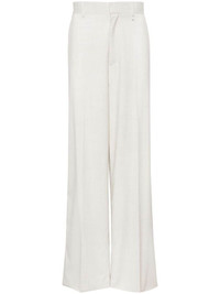 mid-rise wide-leg trousers Highlights - Chalk white - Virgin wool - Interlock twill weave - Pressed crease - Mid-rise - Belt loops - Concealed front fastening - Two side slit pockets - Two rear welt pockets - Wide leg Made in Italy Composition Lining: Acetate 60%, Viscose 40% Outer: Virgin Wool 100% SIZE & FIT Model measurements Height 6 ft 2 in(1.88 m) Bust/Chest 36.61 in(93 cm) Hips 35.82 in(91 cm) Waist 27.95 in(71 cm) FittingInformation Designed with a wide leg, offering a loose and roomy fit Made from a midweight non-stretch fabric This piece fits true to size – take your usual size