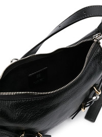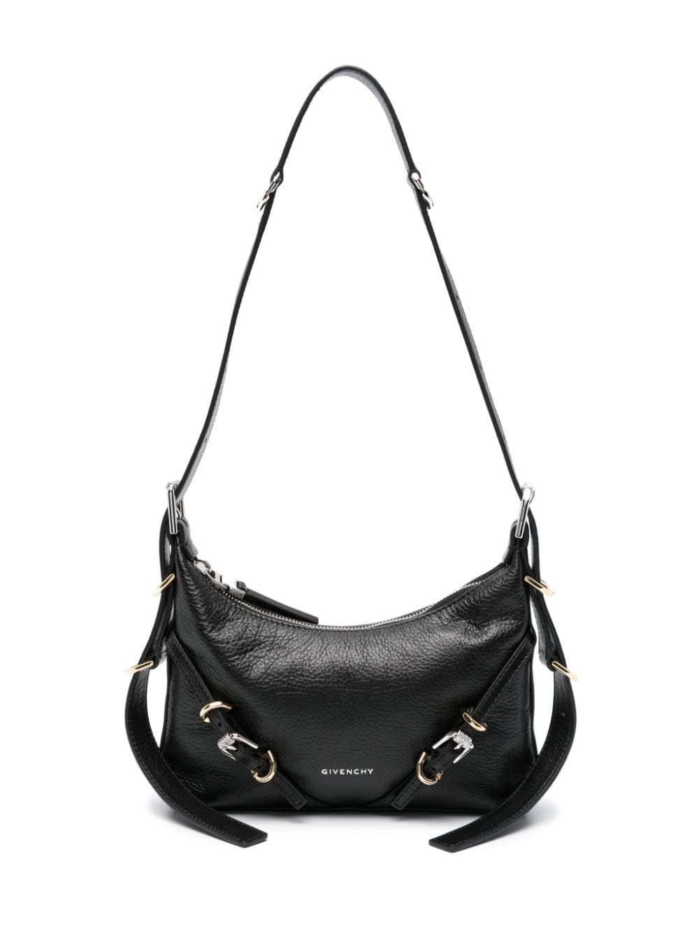 mini Voyou crossbody bag Givenchy's Voyou family is defined by its functional straps and utilitarian D-rings. The slouchy triangular silhouette of this small black version is framed by two buckled bands at the front, both threaded with the same mixed-metal hardware found along the elongated shoulder strap. Highlights - Black - Calf leather - Pebbled texture - Adjustable shoulder strap - Buckle strap detailing - Logo stamp to the front - Main compartment - Internal logo stamp - Full lining - Mixed-metal hardware - Top zip fastening - This piece comes complete with a protective dust bag. Made in Italy Composition Outer: Calf Leather 100% SIZE & FIT Model measurements Height 5 ft 11 in(1.8 m) Bust/Chest 31.49 in(80 cm) Hips 36.61 in(93 cm) Waist 24.4 in(62 cm) Measurement DEPTH 1.57 in(4 cm) HEIGHT 5.51 in(14 cm) STRAP 35.82 in(91 cm) WIDTH 8.26 in(21 cm)