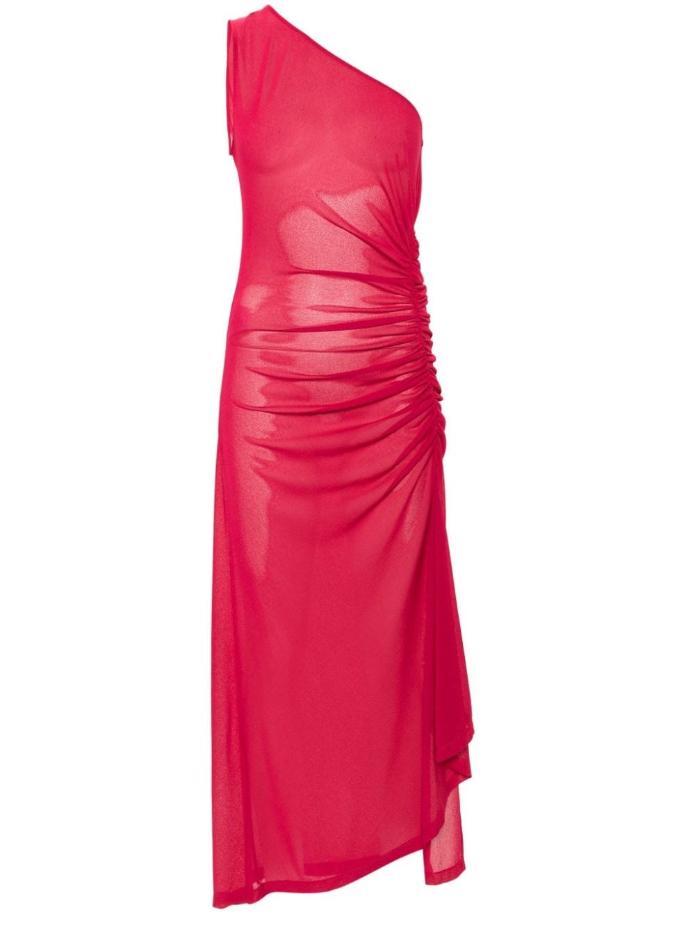 one-shoulder dress Highlights - Raspberry pink - Stretch-design - Semi-sheer construction - Asymmetric design - Gathered detailing - Draped detailing - One-shoulder - Sleeveless - Side slit - Asymmetric hem - Slip-on style Made in Italy Composition Polyester 100% SIZE & FIT Model measurements Height 5 ft 9 in(1.76 m) Bust/Chest 31.1 in(79 cm) Hips 36.61 in(93 cm) Waist 24.8 in(63 cm) Measurement HIPS 34.01 in(86.4 cm) LENGTH 54.01 in(137.2 cm) WAIST 20.98 in(53.3 cm) BUST 27.99 in(71.1 cm) FittingInformation Designed for a slim fit that sits just away from the body offering a close yet comfortable fit Made from a lightweight non-stretch fabric This piece fits true to size – take your usual size