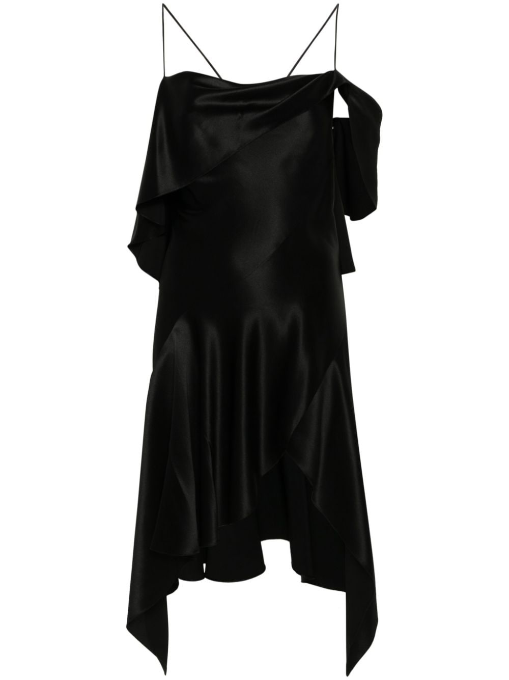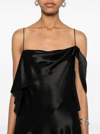 one-shoulder silk dress Highlights - Black - Silk - Satin finish - Asymmetric design - Ruffled detailing - One-shoulder - Rear criss-cross straps - Asymmetric hem - Unlined - Concealed side zip fastening Made in Italy Composition Silk 100% SIZE & FIT Model measurements Height 5 ft 9 in(1.76 m) Bust/Chest 31.1 in(79 cm) Hips 36.61 in(93 cm) Waist 24.8 in(63 cm) FittingInformation Designed for a slim fit that sits just away from the body offering a close yet comfortable fit Made from a lightweight non-stretch fabric This piece fits true to size – take your usual size