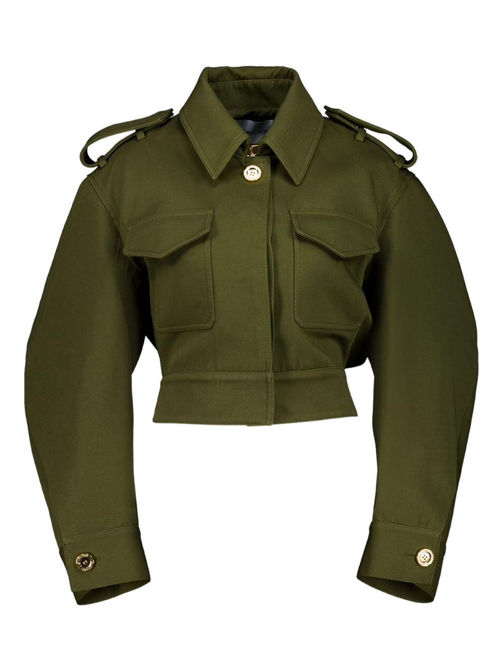 patch-pocket cropped military jacket Highlights - Green - Cotton-wool blend - Flap patch-pockets - Button fastening - Epaulettes - Long sleeves Made in Italy Composition Cotton 76%, Wool 24% Washing instructions Read Manufacturer Guidelines