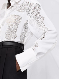 perforated-pattern longlsleeved shirt white perforated design classic collar concealed front fastening long sleeves Made in Italy Composition Polyester 100% SIZE & FIT Model measurements Height 5 ft 10 in(1.77 m) Bust/Chest 32.28 in(82 cm) Hips 35.03 in(89 cm) Waist 25.19 in(64 cm) Washing instructions Dry Clean Only