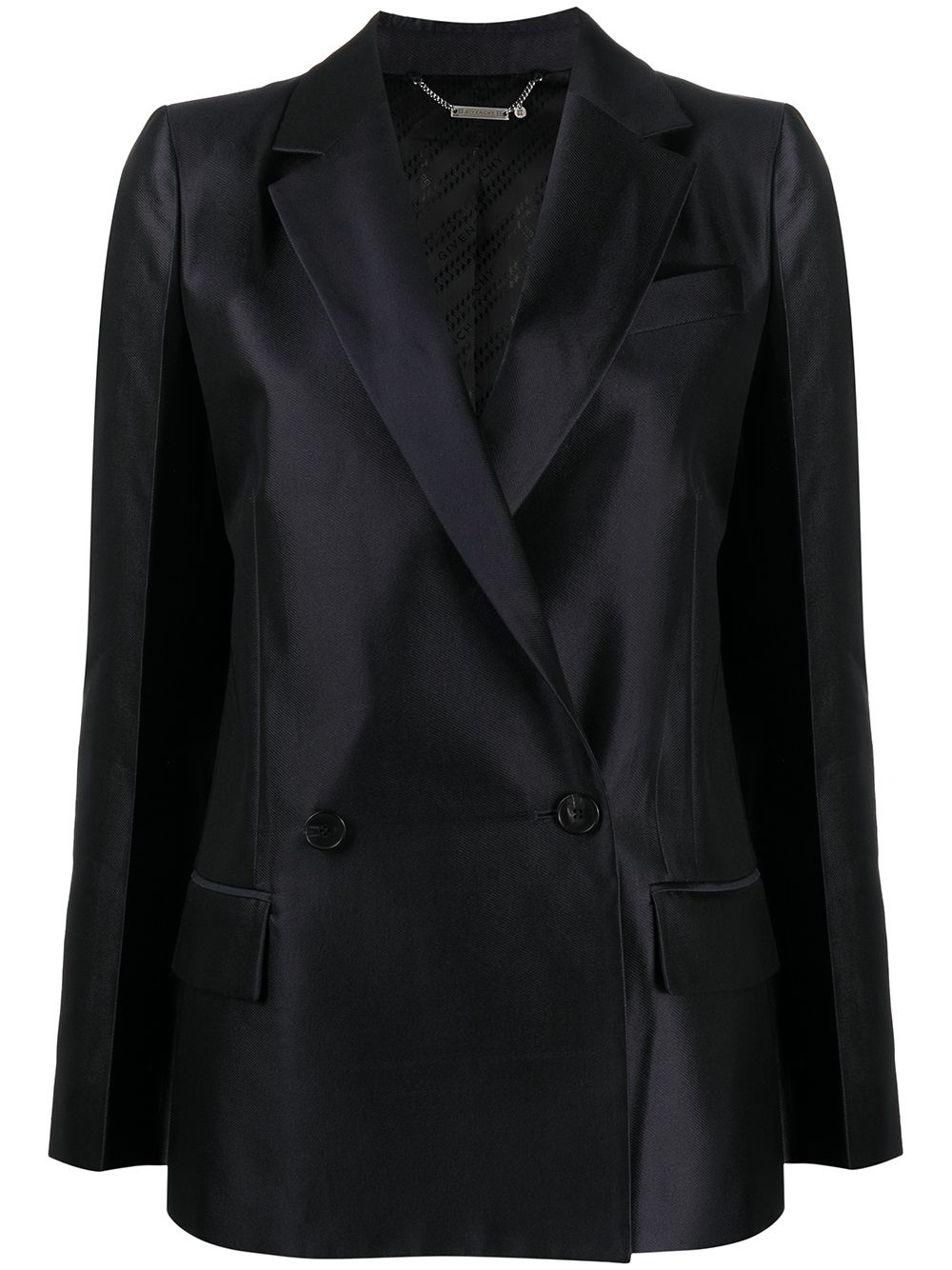 plain double-breasted blazer According to the Kubler-Ross model, denial is just one of the five stages of grief. Since we don't want you to regret anything, make sure this midnight blue wool-silk blend plain double-breasted blazer from Givenchy is part of your life. Thank us later. Featuring peaked lapels, long sleeves, button cuffs, a chest pocket, front flap pockets and a back slit at hem. Made in Italy Composition Outer: Wool 56%, Silk 44% Lining: Cupro 51%, Viscose 49% SIZE & FIT Model measurements Height 5 ft 10 in(1.78 m) Bust/Chest 33.07 in(84 cm) Hips 35.82 in(91 cm) Waist 25.98 in(66 cm) Washing instructions Dry Clean Only