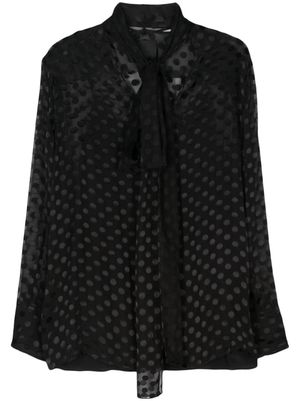 BLOUSE IN POLKA DOTS DÉVORÉ SATIN WITH LAVALLIÈRE