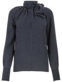 printed silk blouse Highlights - Navy blue/white - Silk - Polka dot print - Gathered detailing - Gathered tie neck - Long raglan sleeves - Buttoned cuffs - Straight hem Made in Italy Composition Silk 100%