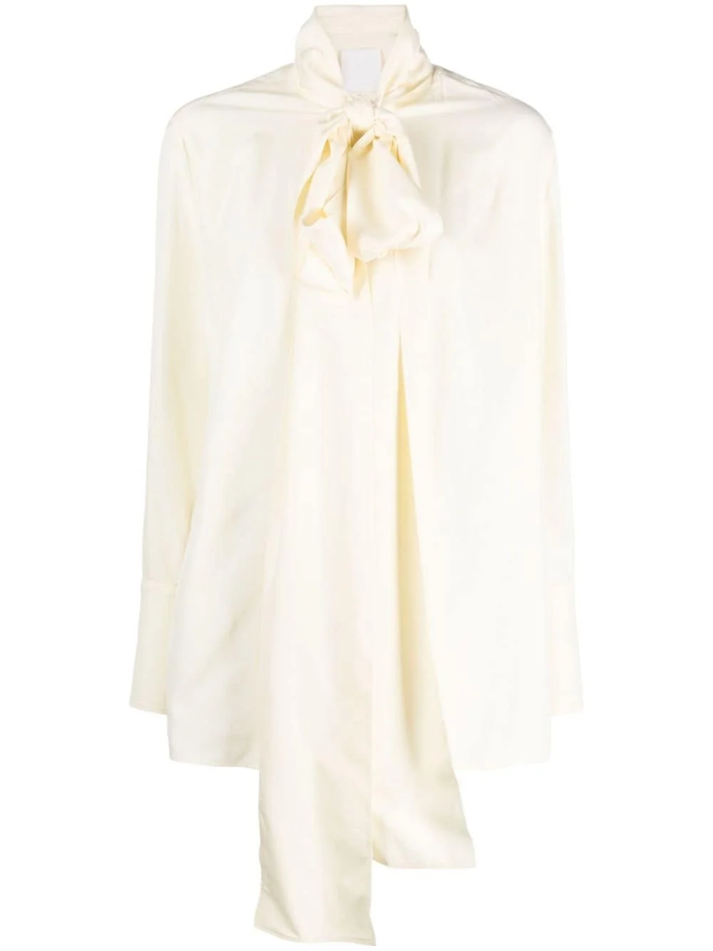 pussy-bow silk blouse Highlights - Cream white - Silk - Pussy-bow collar - Long wide sleeves - Buttoned cuffs - Straight hem Made in Italy Composition Silk 100% SIZE & FIT Model measurements Height 5 ft 10 in(1.78 m) Bust/Chest 31.49 in(80 cm) Hips 36.22 in(92 cm) Waist 25.59 in(65 cm) FittingInformation Designed to be unstructured, offering a loose fit throughout The tie fastening gives an adaptable and personalised fit Made from a midweight non-stretch fabric This piece fits true to size – take your usual size
