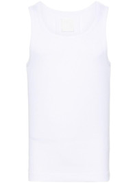 ribbed tank top Highlights - White - Stretch-cotton - Fine ribbed - Scoop neck - Sleeveless - Straight hem - Pull-on style Imported Composition Cotton 98%, Elastane 2% SIZE & FIT Model measurements Height 6 ft 2 in(1.87 m) Bust/Chest 38.18 in(97 cm) Hips 36.61 in(93 cm) Waist 29.13 in(74 cm) FittingInformation Designed for a slim fit, offering a comfortable fit that sits just away from the body Made from a midweight non-stretch fabric, this piece offers minimal elasticity when worn This piece fits true to size – take your usual size Washing instructions Machine Wash
