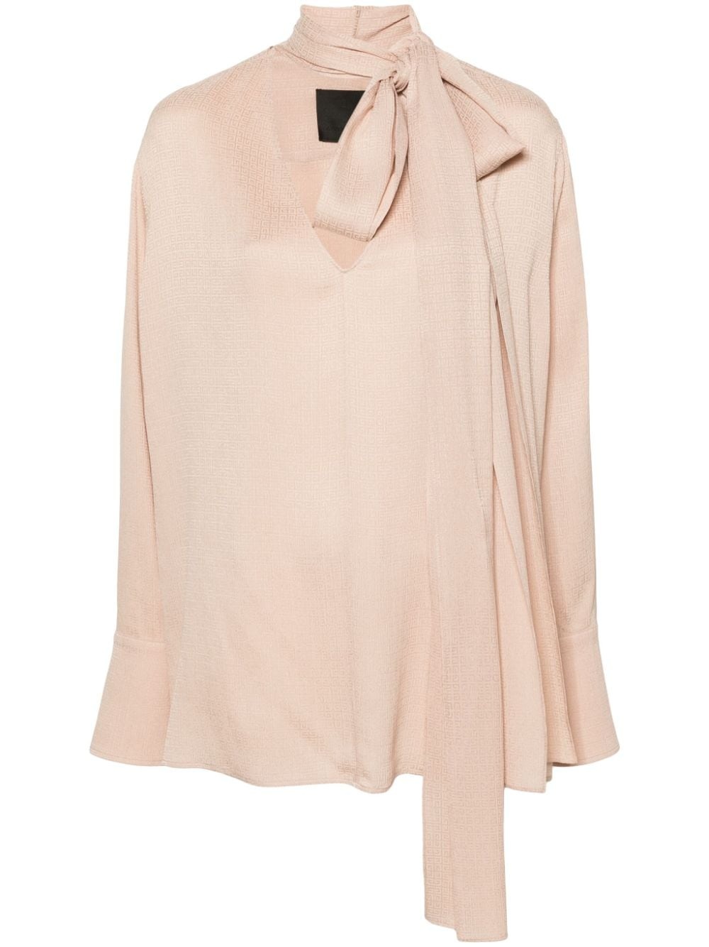 scarf-detail silk blouse Highlights - Blush beige - Silk - Crepe texture - Scarf detailing - Signature 4g motif - Monogram jacquard - V-neck - Drop shoulder - Long sleeves - Buttoned cuffs - Buttoned cuffs Made in Italy Composition Silk 100% SIZE & FIT Model measurements Height 5 ft 11 in(1.8 m) Bust/Chest 34.25 in(87 cm) Hips 35.82 in(91 cm) Waist 24.8 in(63 cm) FittingInformation Designed to be unstructured, offering a loose fit throughout Made from a midweight non-stretch fabric This piece fits true to size – take your usual size