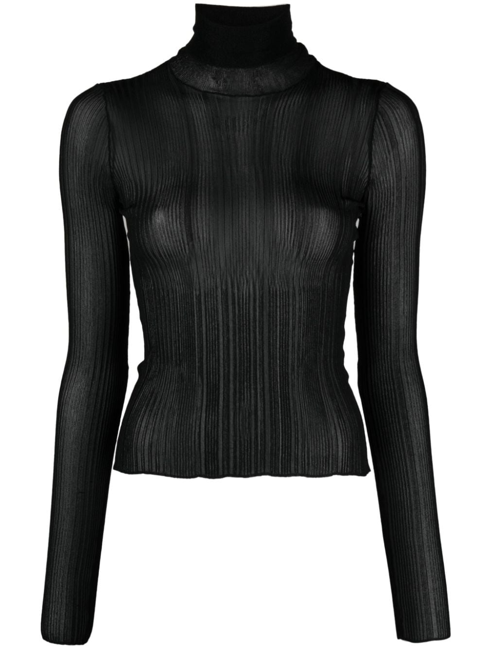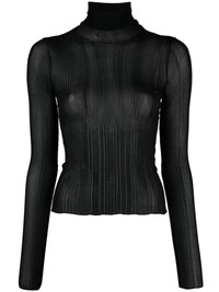 semi-sheer mock-neck top Pared-back colour palettes are a recurring trope at Givenchy, and this top continues the theme. It's cut from black semi-sheer fabric that's characterised by fine pleats for a hit of dimension. Highlights - Black - Semi-sheer construction - Ribbed knit - High neck - Long sleeves - Straight hem Made in Italy Composition Viscose 87%, Polyamide 13% SIZE & FIT Model measurements Height 5 ft 11 in(1.8 m) Bust/Chest 33.07 in(84 cm) Hips 37.4 in(95 cm) Waist 25.19 in(64 cm) Measurement SLEEVE LENGTH 20.47 in(52 cm) LENGTH 21.65 in(55 cm) WAIST 12.59 in(32 cm) BUST 16.53 in(42 cm) FittingInformation Designed for a close fit throughout Made with a fine knit, this piece offers some stretch This piece fits true to size – take your usual size