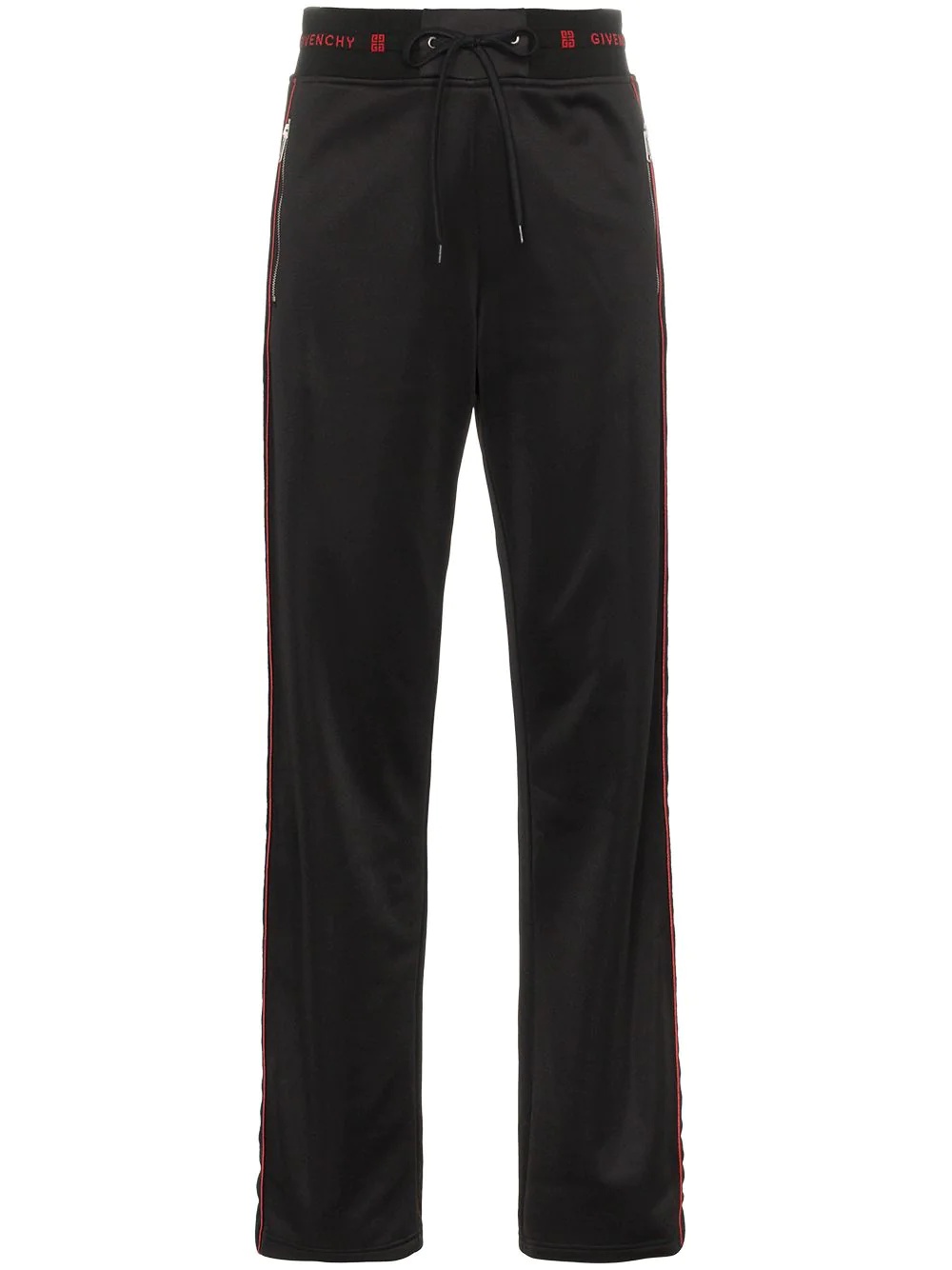 side-stripe logo track pants Black and red side-stripe logo track pants from Givenchy. Imported Composition Outer: Polyester 100% Cotton 75%, Polyester 25% SIZE & FIT Model measurements Height 5 ft 9 in(1.76 m) Bust/Chest 31.49 in(80 cm) Hips 34.64 in(88 cm) Waist 22.83 in(58 cm)