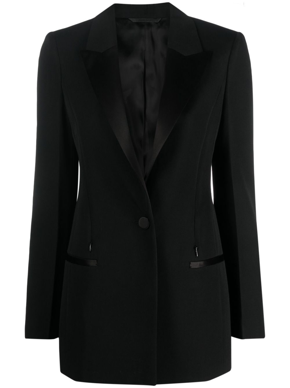 single-breasted wool blazer Givenchy showcases its ability to deliver impeccable tailoring with this blazer. Tailored from wool, the classic single-breasted silhouette is finished with silk satin lapels. Highlights - Black - Wool/silk blend - Peak lapels - Front button fastening - Front zip fastening pockets - Two front welt pockets - Long sleeves - Straight hem Made in Italy Composition Outer: Wool 100%, Viscose 72%, Silk 28% Lining: Cupro 100% SIZE & FIT Model measurements Height 5 ft 10 in(1.79 m) Bust/Chest 31.49 in(80 cm) Hips 35.03 in(89 cm) Waist 23.62 in(60 cm) FittingInformation Designed for a slim fit that sits just away from the body offering a close yet comfortable fit The internal shoulder pads offer a structured shape Made from a midweight non-stretch fabric This piece fits true to size – take your usual size