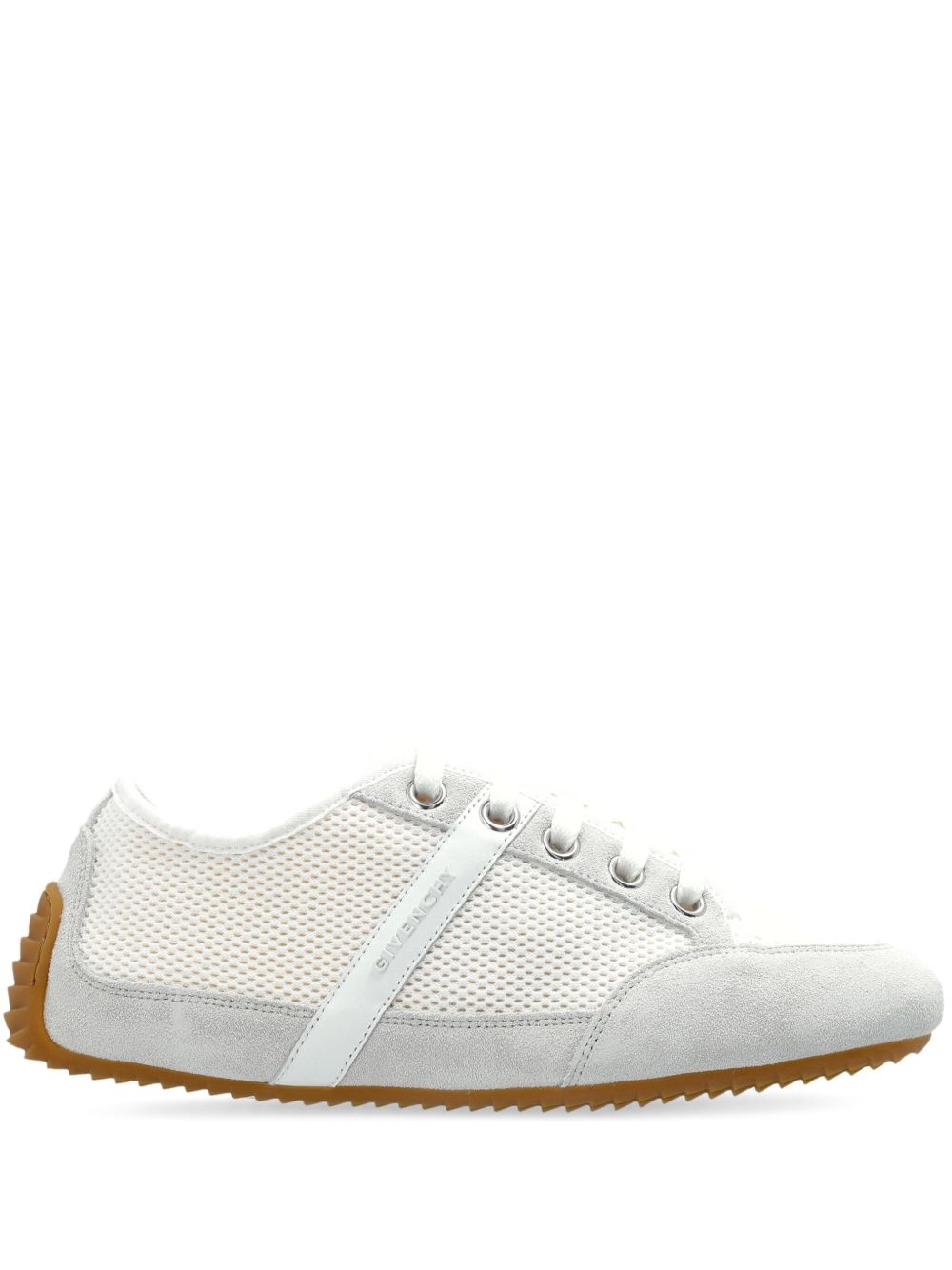 Slim panelled sneakers Highlights - White - Front lace-up fastening - Logo-embossed strap - Flat sole Made in Italy Composition Outer: Suede 100%, Fabric 100% Lining: Fabric 100% Sole: Rubber 100%