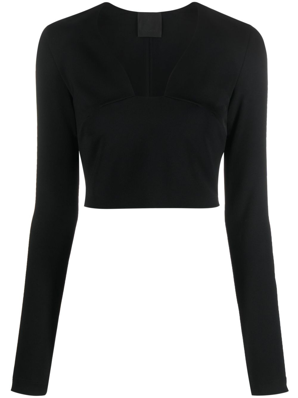 square-neck cropped top Highlights - Black - Stretch-design - Square neck - Side zip fastening - Long sleeves - Straight hem - Cropped Made in Italy Composition Outer: Viscose 93%, Polyamide 4%, Elastane 3% Lining: Polyamide 82%, Elastane 18% SIZE & FIT Model measurements Height 5 ft 9 in(1.76 m) Bust/Chest 33.07 in(84 cm) Hips 34.64 in(88 cm) Waist 25.59 in(65 cm) Measurement SLEEVE LENGTH 25 in(63.5 cm) LENGTH 15 in(38.1 cm) BUST 30 in(76.2 cm) FittingInformation Designed for a close fit throughout The dart stitching adds structure and a closer fit in the torso of this piece Made from a midweight stretch fabric, this piece offers elasticity and flexibility when worn This piece fits true to size – take your usual size