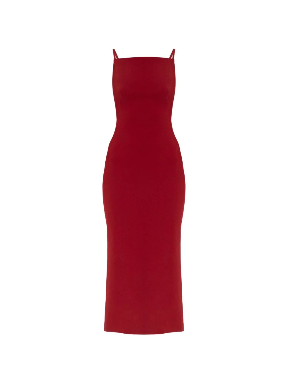 square-neck midi dress Highlights - Dark red - Slim fit - Spaghetti straps - Square neckline - Concealed zip fastening - Split hem Made in Italy Composition Outer: Viscose 65% Acetate 32%, Elastane 3% Washing instructions Read Manufacturer Guidelines
